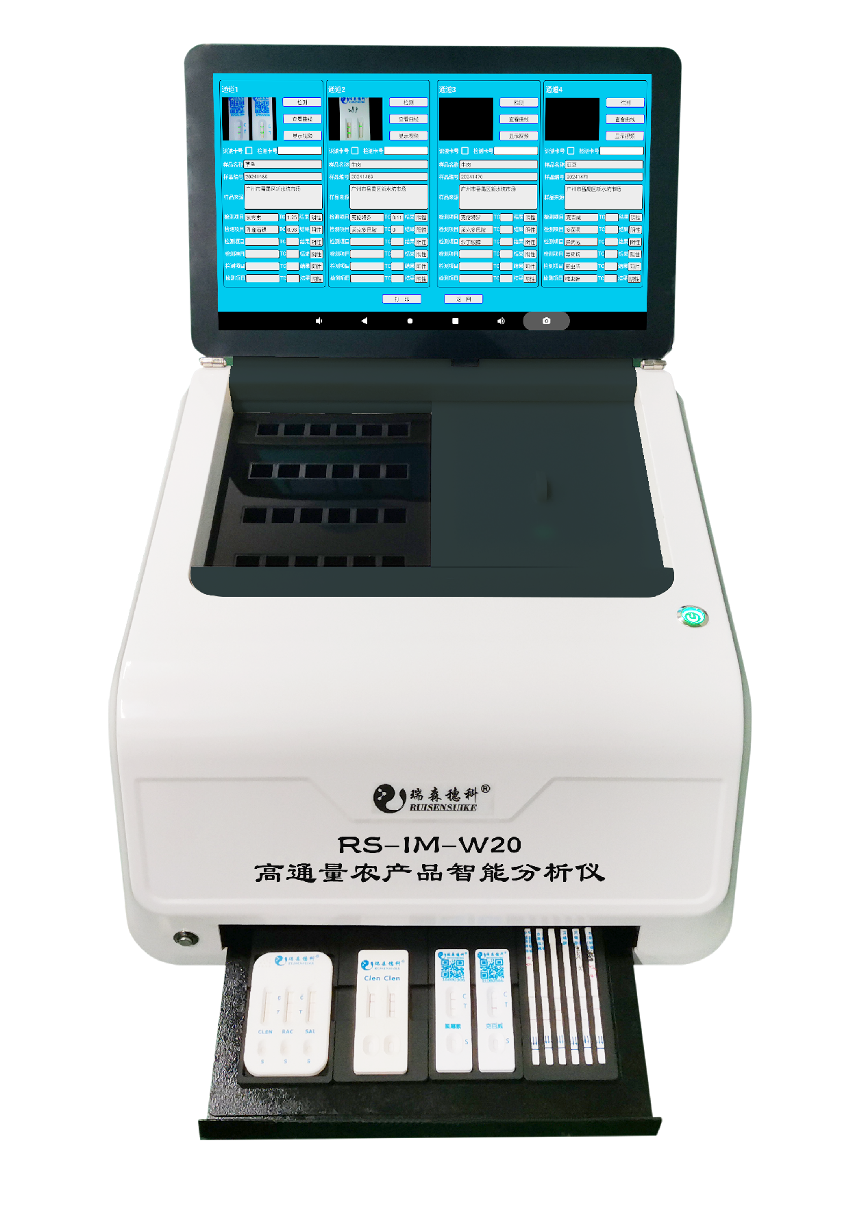 • 翻折式10英寸电容触摸屏幕 • 支持以太网/WIFI 无线网络 • 最高支持32通道多波长+4个读卡槽 • 样品仓密封防水设计 • 农残兽残理化全覆盖 • 检测数据自动上传