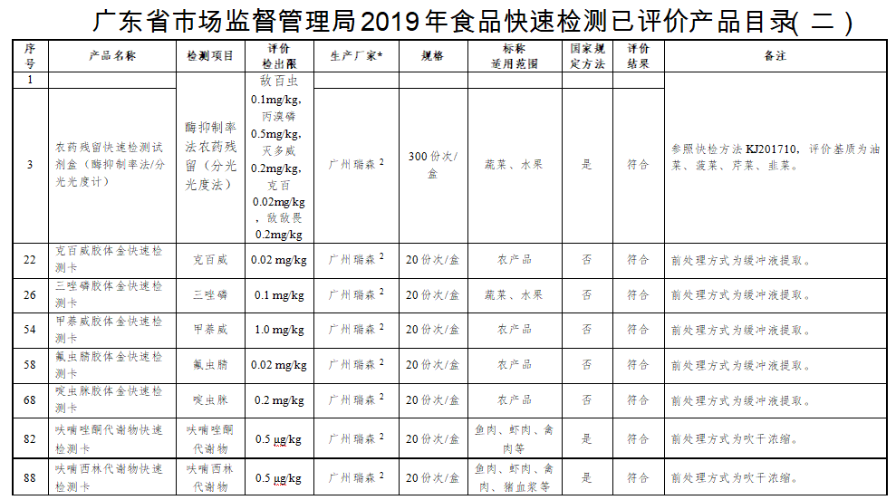 由广东省市场监督管理局组织广东省食品检验所开展的快速检测产品现场验证活动,于近日公布结果。开云手机入口参与的克百威快速检测卡、甲萘威快速检测卡以啶虫脒快速检测卡等11种快检产品通过现场验证。