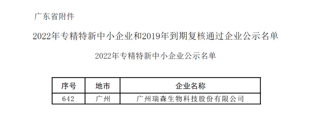 喜讯 | 祝贺瑞森生物通过2022年专精特新中小企业认定